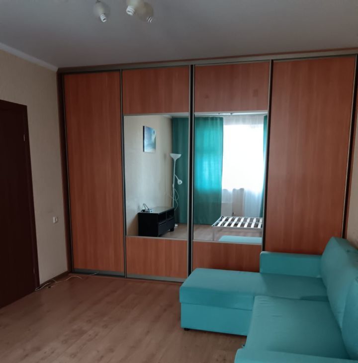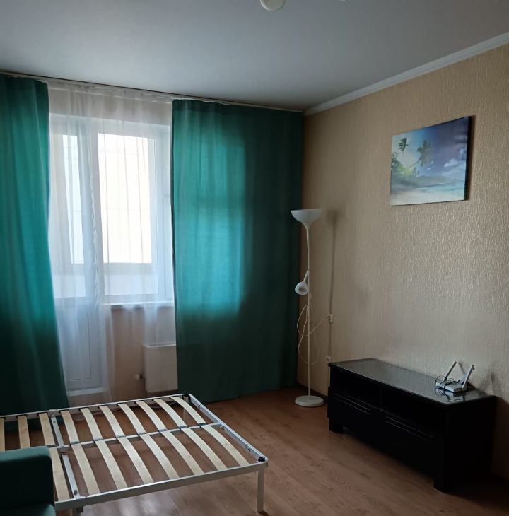 Квартира чистая уютная, оснащена необходимой мебелью. В комнате вместительный шкаф - купе, тумба под ТВ, диван, каркас кровати с основанием 140/200. (в комнате, по согласованию и необходимости будет телевизор и новый матрас).