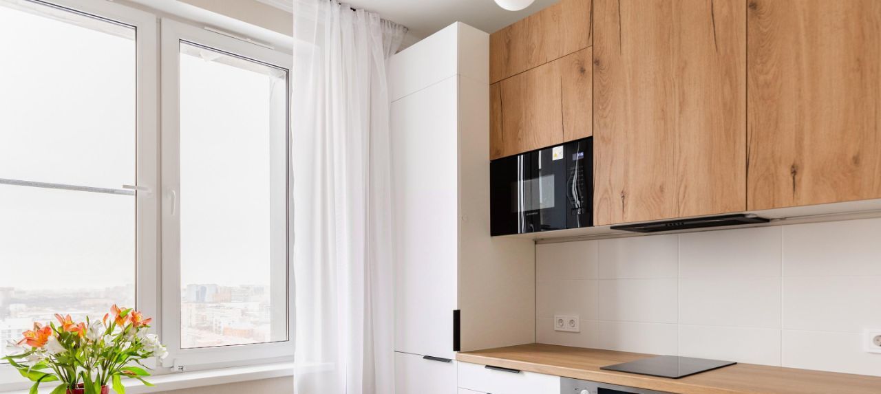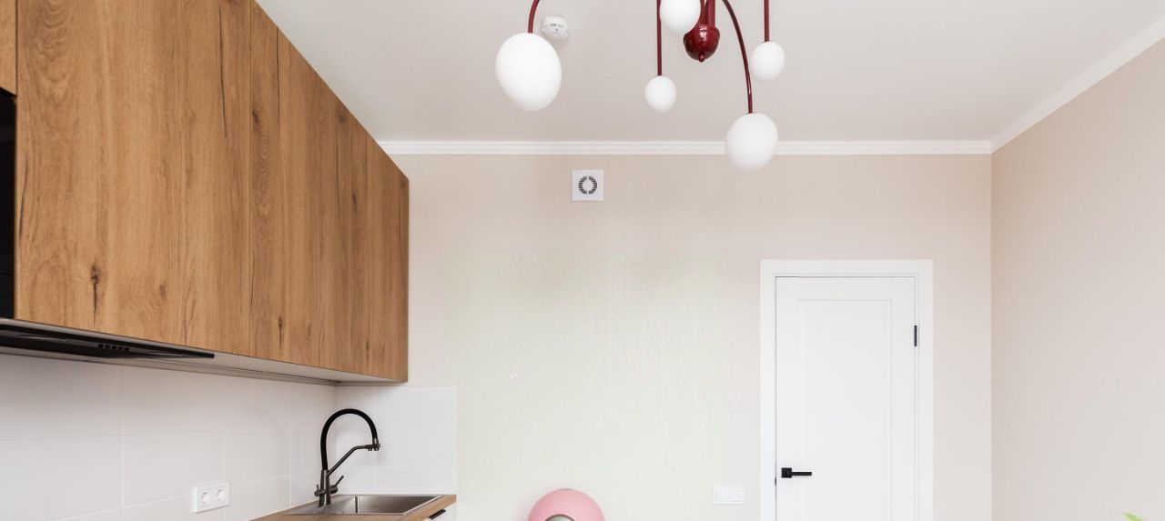 на кухне это встроенный холодильник и посудомоечная машина 60 см, встроенная свч печь, фильтр питьевой воды с 5-ступенчатой системой очистки, дизайнерская аудиоколонка на ножках и комплект посуды;