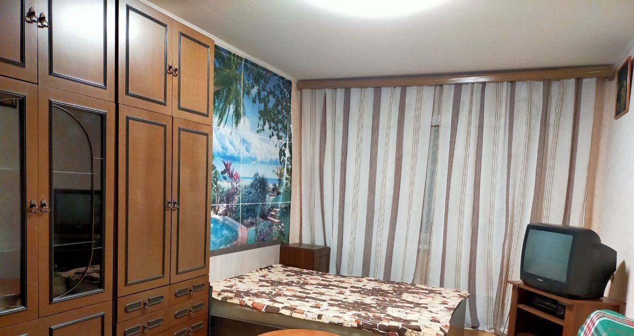 * В комнате 19м2- стенка в хорошем состоянии, 2-х спальная кровать, журнальный стол, ТВ, комод, диван (раскладывается).
