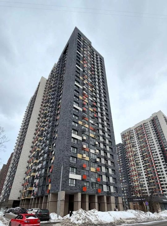 Современный высотный дом с презентабельным фасадом.