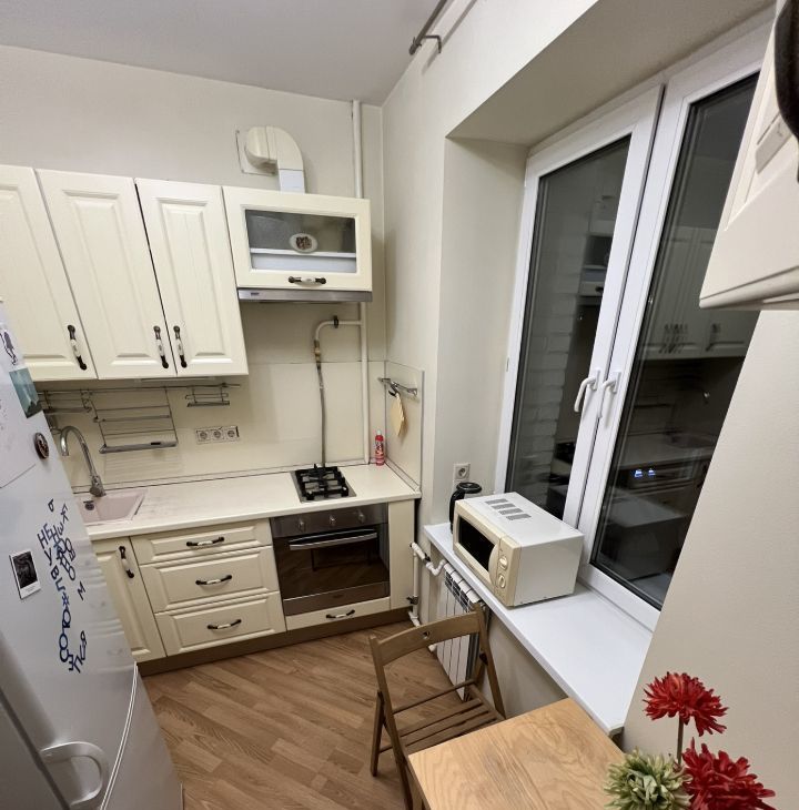 Уютная светлая квартира в доме ЖСК. Дом окружен зеленью ,въезд на территорию дома под шлагбаум. Окна на две стороны во двор и на тихую улицу. Со стороны улицы расположена большая застекленная лоджия 6 кв.м, которая гасит все возможные шумы. До м. Аэропорт 7 мин. пешком. Комната светлая и теплая. Выполнен качественный ремонт. Много места для хранения вещей .В прихожей шкаф для хранения верхней одежды. В комнате вместительный платяной шкаф ,двухспальная кровать с подъемным механизмом и ортопедическим матрасом .Есть раскладывающийся диван с ящиком для хранения белья и вещей, комод, журнальный и рабочий стол. Кухонный гарнитур со встроенной бытовой техникой ,газовая варочная панель и электрический духовой шкаф. Печь СВЧ, двухкамерный холодильник Есть набор посуды, столовые приборы, гладильная доска, пылесос ,утюг и сушилка. Просторный совмещенный санузел с ванной и стиральной машиной. Установлены фильтры на воду Установлена металлическая дверь и стеклопакеты. Подъезд недавно отремонтирован. В шаговой доступности ТЦ Галерея Аэропорт и Авиапарк. В пределах 5-7 минут пешком Вкус Вилл и Азбука вкуса, кулинария Братья Караваевы ,кафе ,рестораны ,аптеки ,банки, химчистки ,хозяйственные магазины, салоны красоты, спортивные центры. Мы будем рады молодому, человеку, девушке или паре без животных и детей. Звоните, отвечу на все ваши вопросы.
