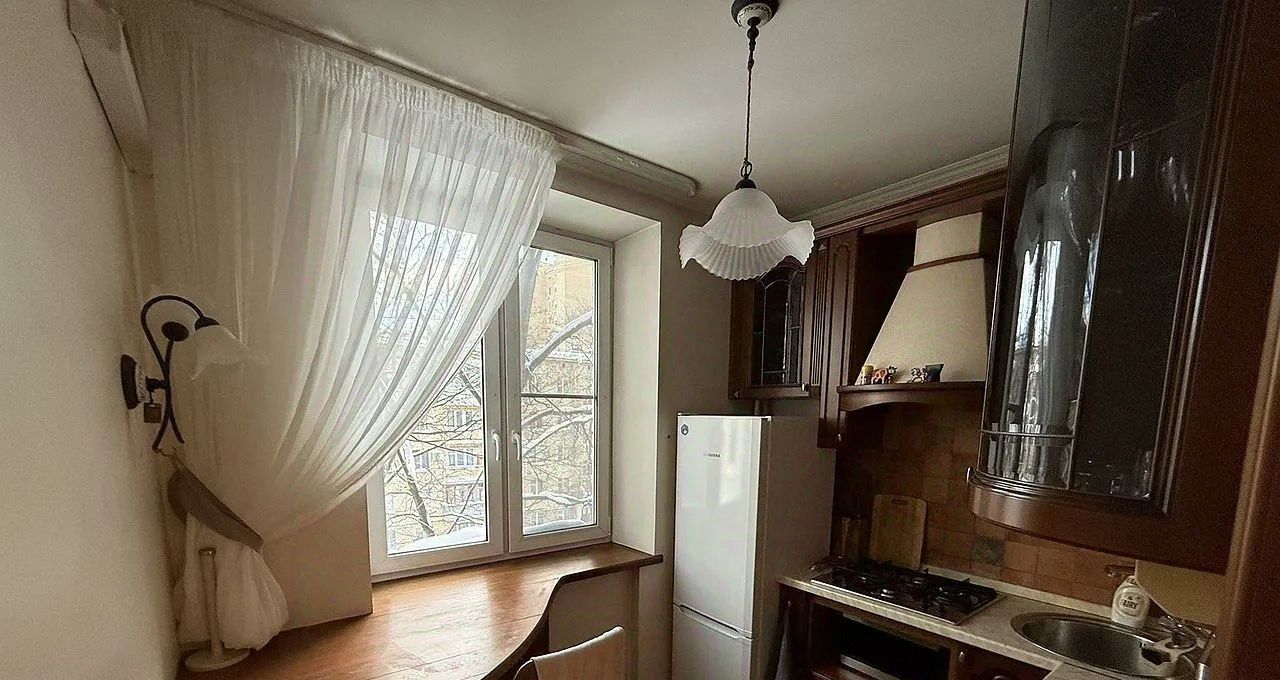 Квартира находится в тихом и пролетарском районе, соседи тихие и интеллигентные, в основном пенсионеры. Квартира расположена на 4 этаже 6-ти этажного кирпичного дома, построенного в 1963 году. В доме есть мусоропровод, один пассажирский лифт, что очень редко в таких старых домах. Окна выходят на тихий и просторный двор. Дом расположен в районе с развитой инфраструктурой. Рядом находятся школы, детские сады, клиники и магазины.
