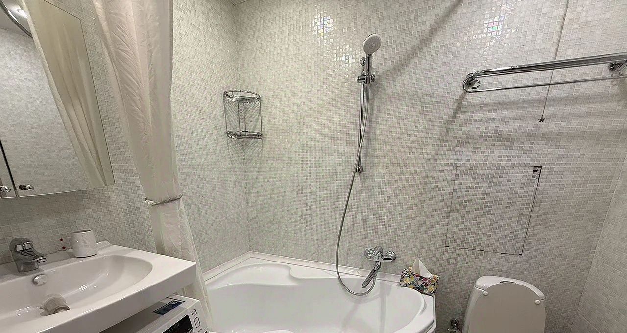 В квартире имеется следующая техника для проживания : газовая плита с 4-мя конфорками, домофон с камерой,микроволновая печь, кондиционер, холодильник и стиральная машина. Санузел совмещён. В комнате просторная кровать, вместительные большие шкафы при входе и в комнате. Окна стеклопакеты, балкон остеклён и выходит в тихий двор.