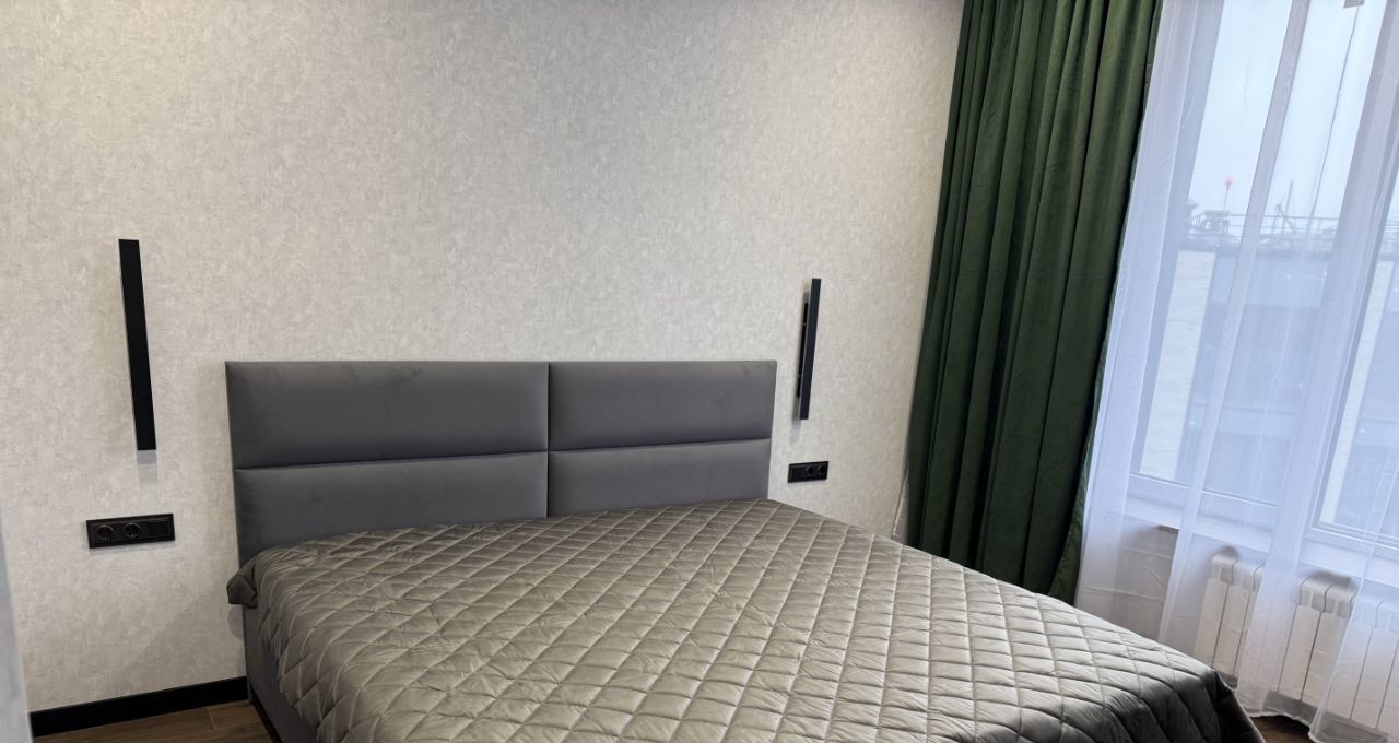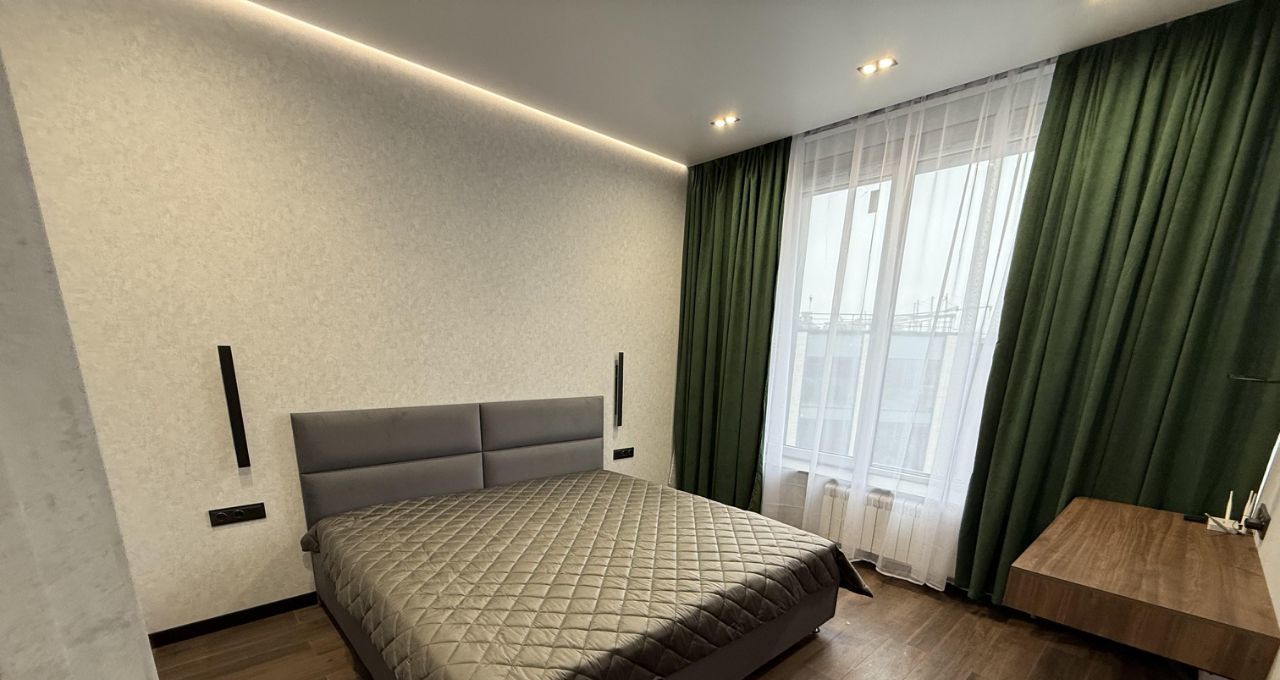 Впервые Сдается уютная однокомнатная квартира с дизайнерским ремонтом в новом доме 2023 года постройки. Общая площадь квартиры составляет 45.5 кв. м, с просторной кухней 15 кв. м и жилой зоной 14 кв. м. Расположена на 15 этаже 19-этажного дома. Высокие потолки 3 метра создают ощущение простора. Окна выходят на улицу, что обеспечивает хорошую освещенность.