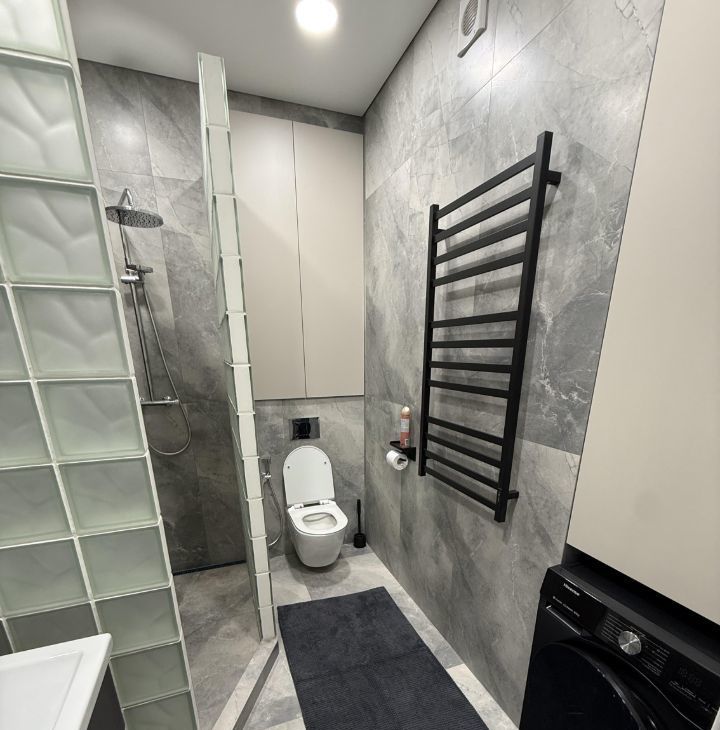 В квартире есть все необходимое для комфортного проживания. Современная мебель в комнате и на кухне, где можно удобно разместиться и отдохнуть. Из техники в вашем распоряжении: кондиционер, холодильник, посудомоечная и стиральная машины, а также телевизор. В ванной комнате установлена душевая кабина. Интернет уже подключен, поэтому вы всегда будете на связи.
