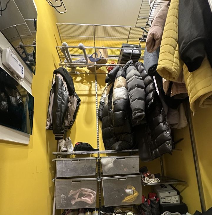 Вместительная отдельная гардеробная со шведской системой хранения.