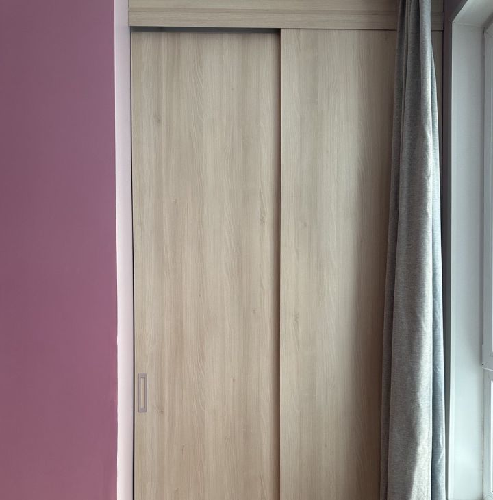 Отдельная спальня со встроенным шкафом-купе и местом под макияжную зону.