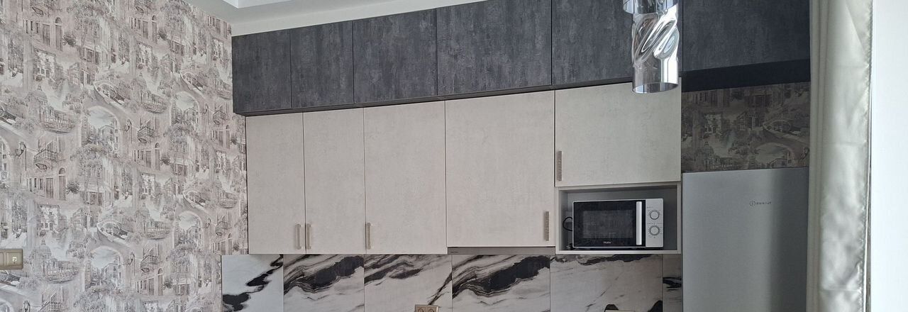 В квартире есть всё необходимое для комфортного проживания: современная мебель в комнате и на кухне, техника — холодильник, телевизор, стиральная машина и кондиционер. Просторная кухня площадью 12 кв. м станет отличным местом для семейных ужинов или приёма гостей. Санузел совмещённый, выполнен в современном стиле, что добавляет удобства в повседневной жизни.