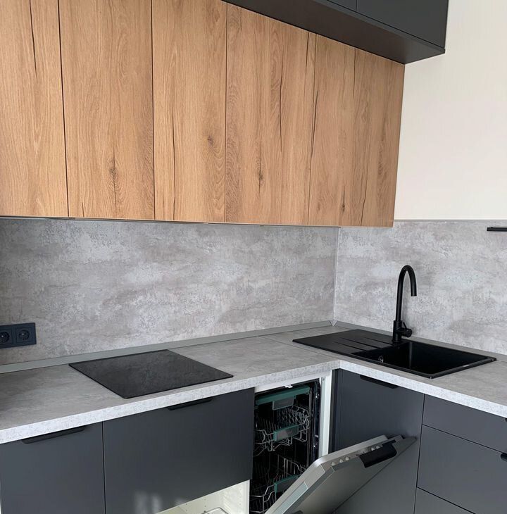 Ремонт под ключ: Дизайнерский проект, новая мебель и вся необходимая техника. Практичный керамогранит во всех зонах активного использования (кухня, прихожая, санузлы) — за чистотой легко ухаживать.