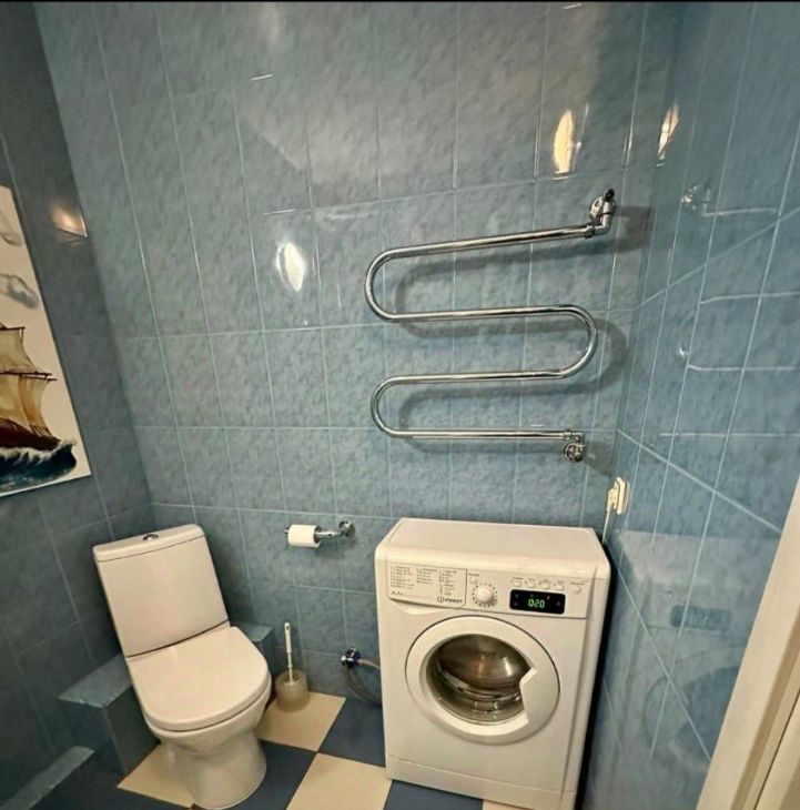Ванная комната совмещенная, оснащена современной сантехникой и стиральной машиной.
