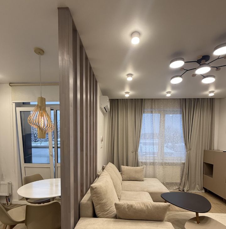 Сдаётся стильная однокомнатная квартира в современном доме 2021 года постройки. Квартира расположена на втором этаже 12-этажного монолитного здания. Общая площадь составляет 53 кв. м, жилая площадь — 30 кв. м, кухня — 12 кв. м. Высота потолков — 2.8 метра. Окна выходят на улицу, создавая светлую и уютную атмосферу.