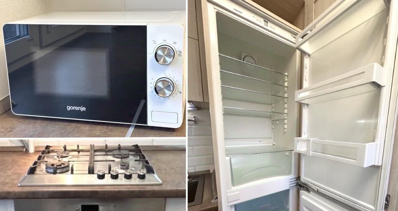 Есть все необходимое для комфортного проживания: спальные места, вместительный шкаф, кухонный гарнитур, холодильник, микроволновая печь, мебель, техника.