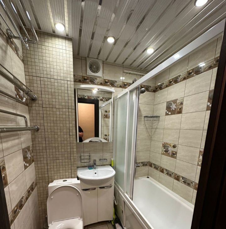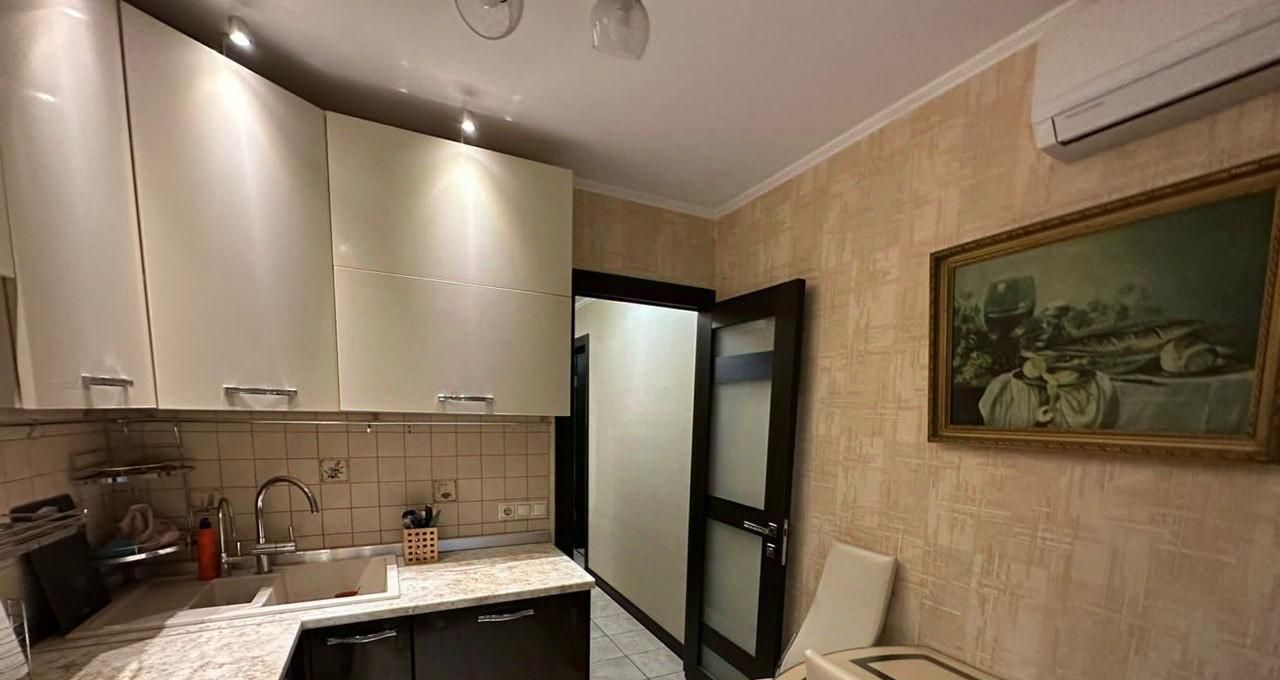 Квартира с евроремонтом, что видно по современному интерьеру и качественной отделке. Здесь есть всё необходимое для комфортного проживания: кондиционер, холодильник, телевизор и стиральная машина. Просторная кухня и комната меблированы, ванная оборудована ванной, а совмещённый санузел оформлен в современном стиле. Высота потолков составляет 2,64 метра, что добавляет ощущение пространства и свободы.