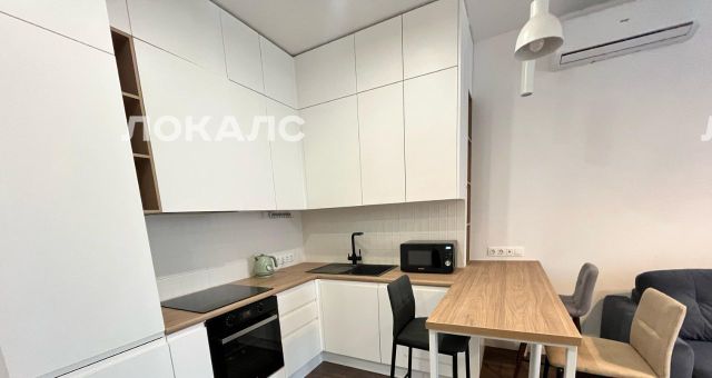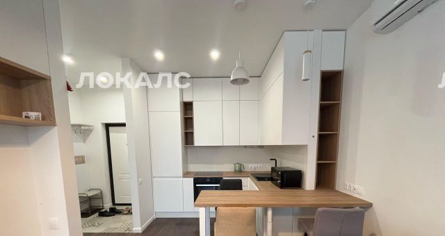 Продается стильная однокомнатная квартира в Москве на улице Красных Зорь, 33А, в новом доме 2021 года постройки. Квартира располагается на 9-м этаже 15-этажного здания. Общая площадь составляет 42 кв. м, из них жилая — 11.3 кв. м, а просторная кухня занимает 20 кв. м. Высокие потолки в три метра добавляют ощущение простора, а окна выходят как на улицу, так и во двор, что обеспечивает много света в течение дня.
