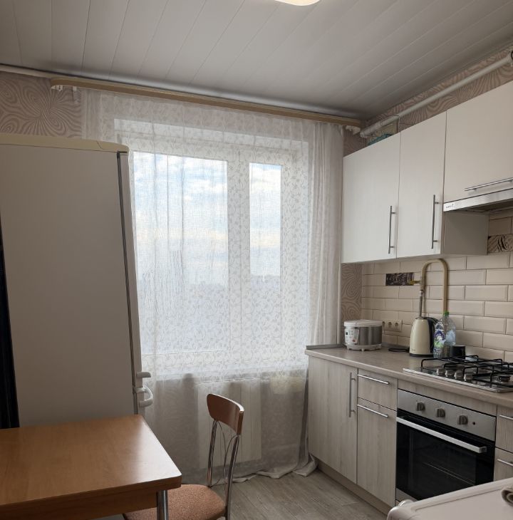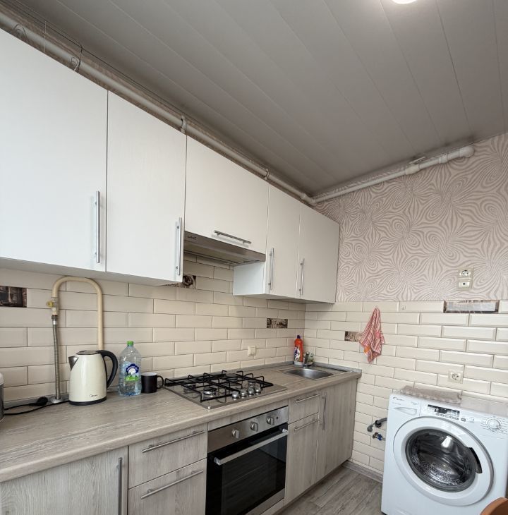 • Кухня с техникой (холодильник, духовой шкаф, варочная газовая панель, чайник, вытяжка)