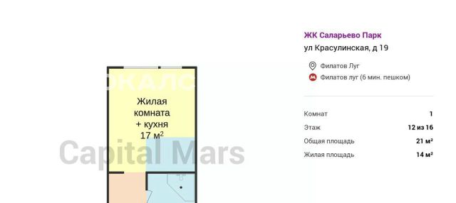1-к кв. Москва ул. Красулинская, 19 (21.0 м²)