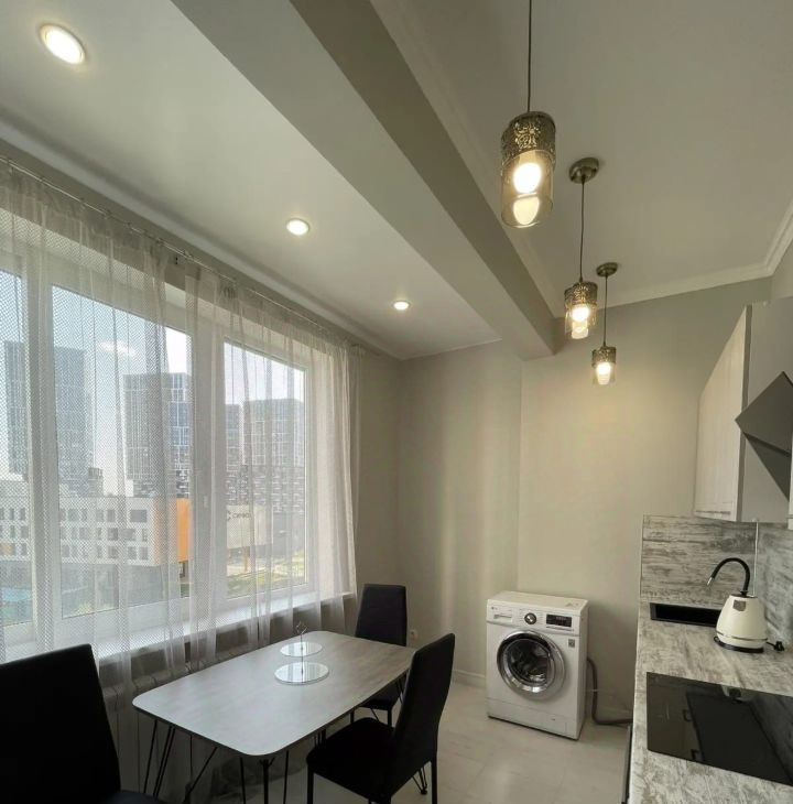 Сдается квартира в доме бизнес класса ЖК"Символ".Очень красивый вид из окна. Квартира со всей техникой и мебелью .Встроенная кухня.Сус , душ кабина .В комнате диван , шкаф, телевизор.