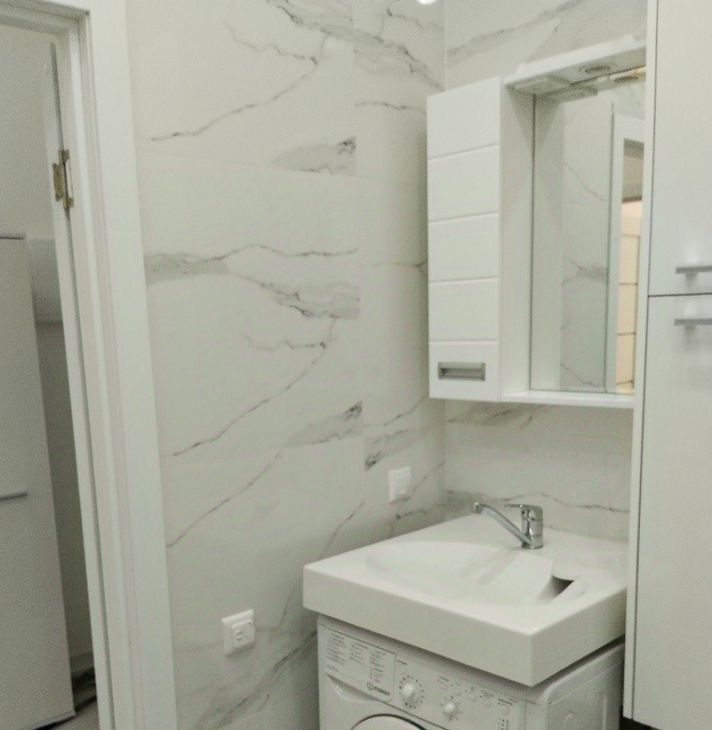 В Ванной комнате - есть все что нужно для максимального удобства, в т. ч. стиральная машинка, регулируемый теплый пол, гигиенический душ, стильная раковина над стиральной машиной, керамогранит Кеrаmа Маrаzzi, но главное - большая угловая Ванна 170х110 см на двоих!