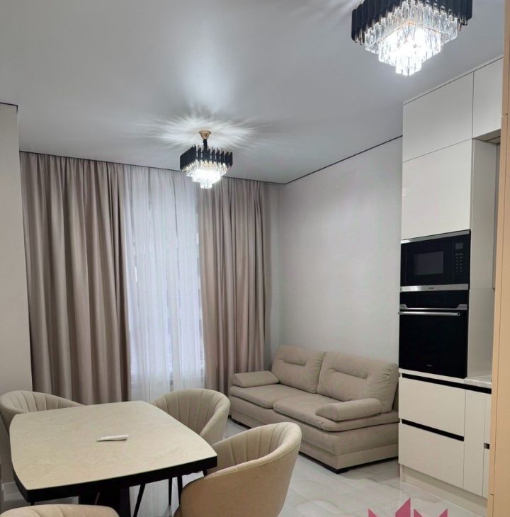 Квартира готова к заселению, есть все для комфортной жизни, кухня оснащена современной мебелью и необходимой техникой.