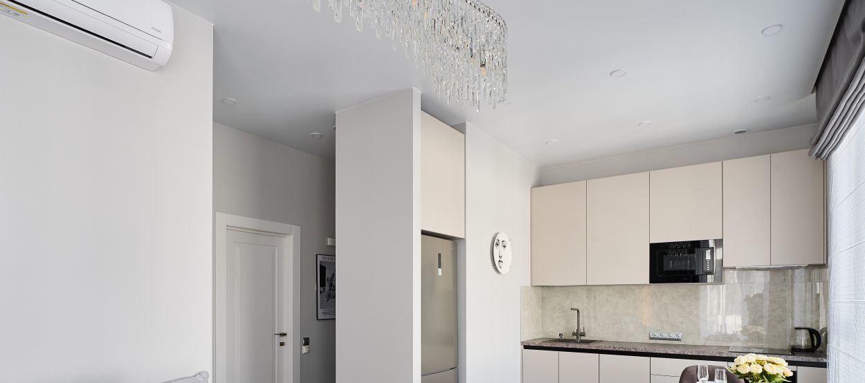 Квартира выполнена в дизайнерском стиле, что придаёт ей уникальность и современность. В комнате и на кухне есть вся необходимая мебель. Кухня оборудована современной техникой: кондиционером, холодильником, посудомоечной машиной и телевизором. В ванной комнате установлена ванна, есть стиральная машина. Окна выходят во двор, поэтому в квартире всегда тихо и спокойно.