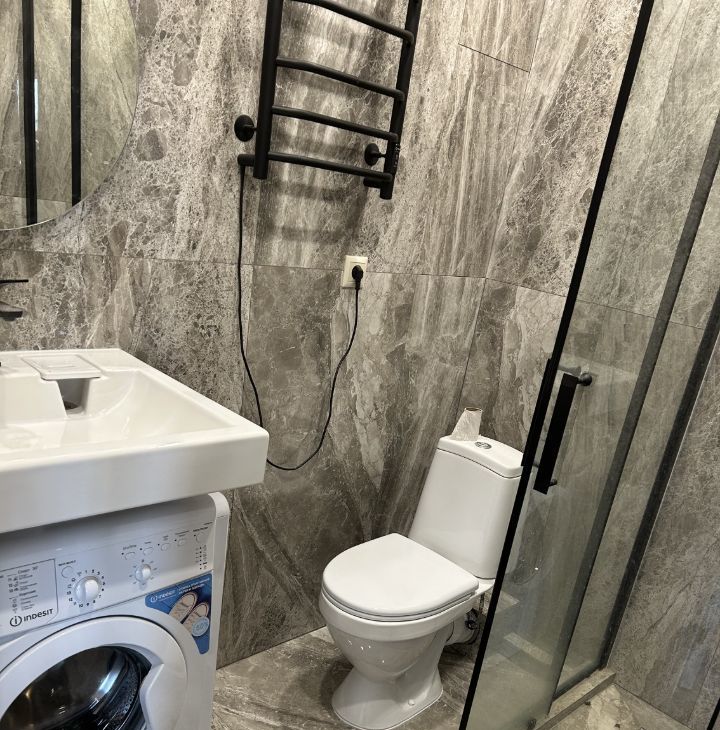 Высокие потолки 3.1 метра создают дополнительное ощущение свободного пространства. В студии выполнен евроремонт. Квартира укомплектована всей необходимой мебелью. Кухонный гарнитур с набором бытовой техники. В санузле керамогранит до потолка, душевая кабина. Центральное кондиционирование воздуха.