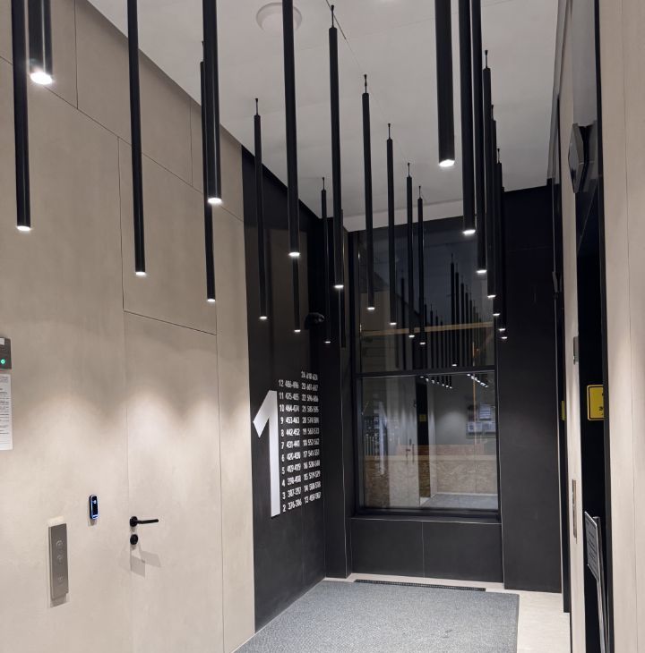 Дом бизнес-класса. В доме на первом этаже имеется спортивный зал для жильцов.