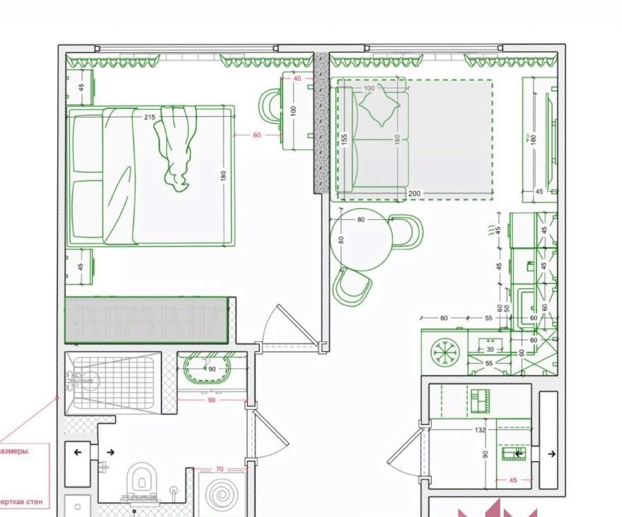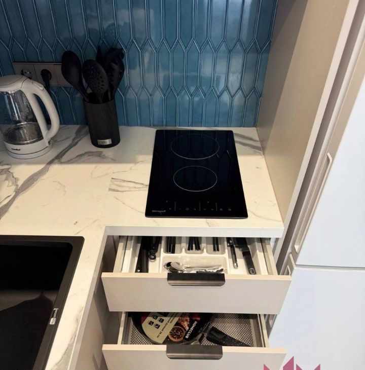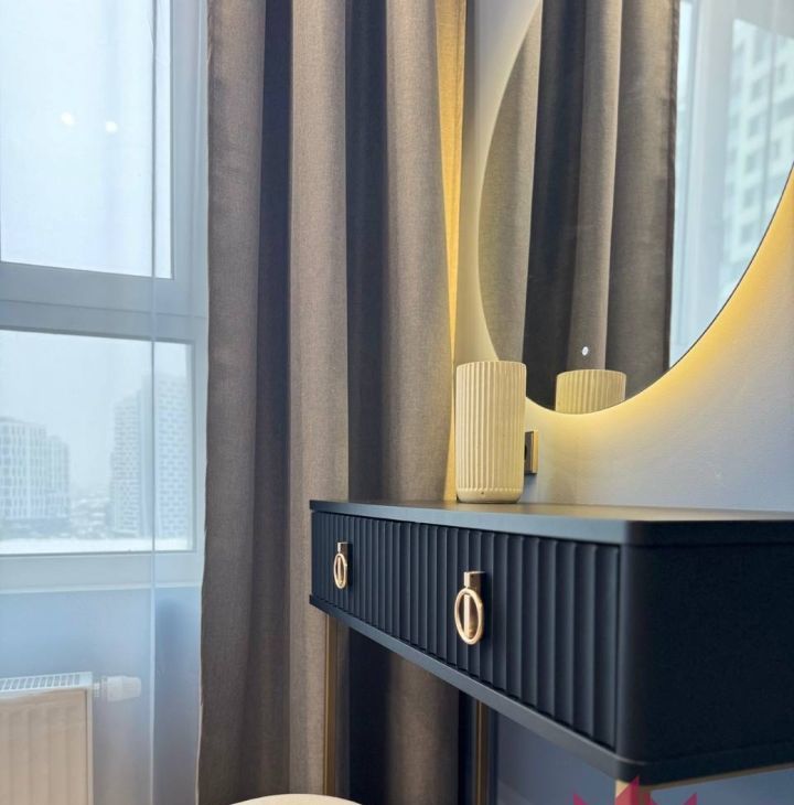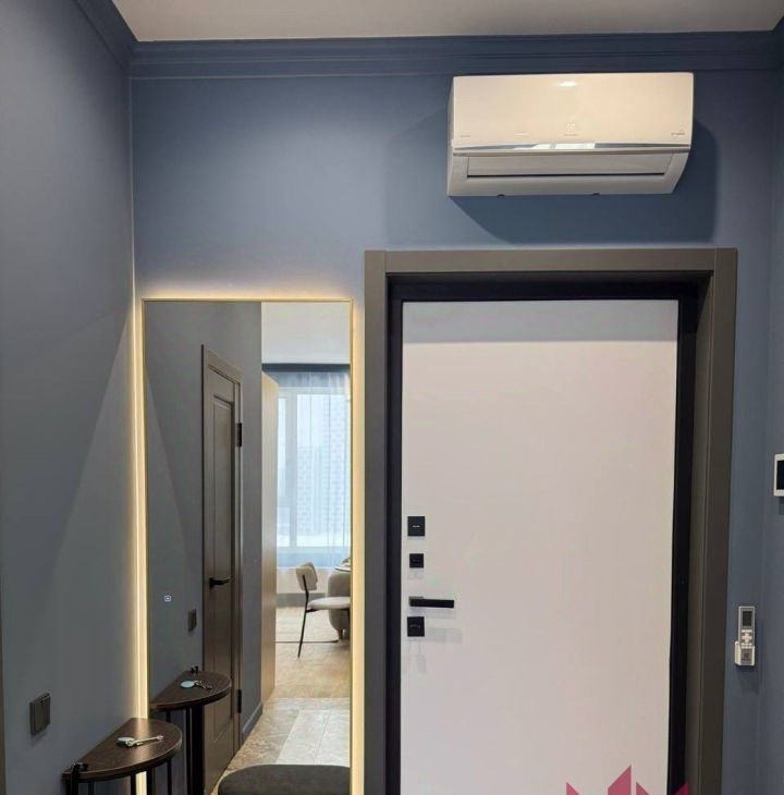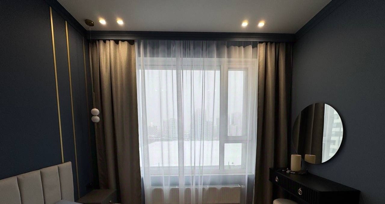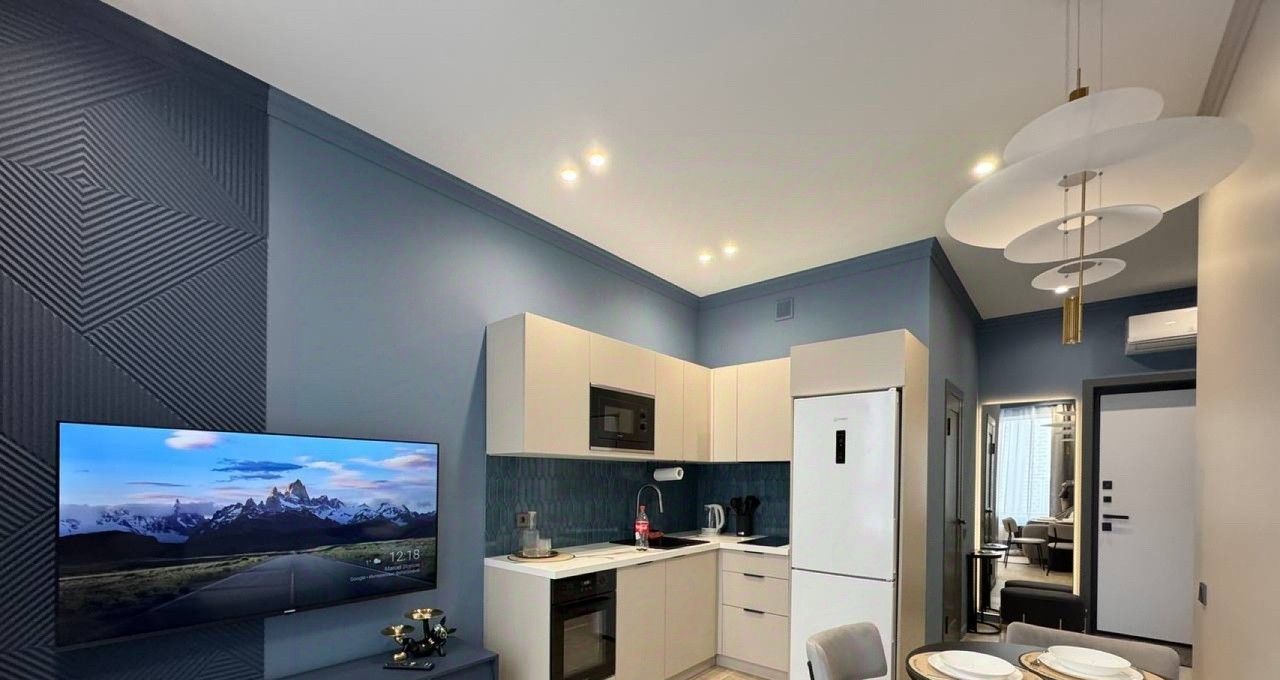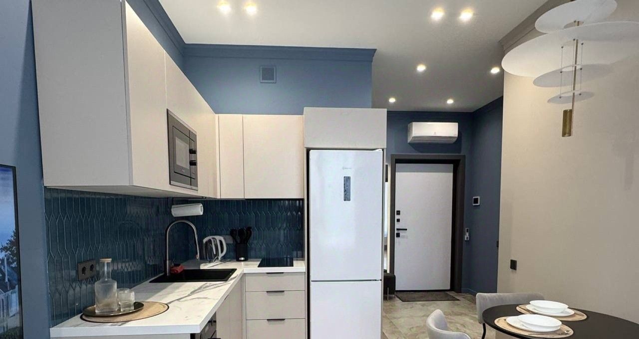 В квартире выполнен дизайнерский ремонт, высокие потолки 2.86 метра и панорамные окна с видом на спокойный двор. Пространство общей площадью 35 м² грамотно зонировано: уютная гостиная-спальня 12 м² и спальня 10 м². Квартира полностью укомплектована новой качественной техникой и мебелью: есть кондиционер, стиральная и посудомоечная машины, холодильник, телевизор, интернет, а также вся необходимая кухонная и корпусная мебель.