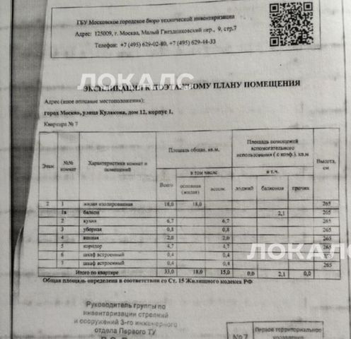 1-к кв. Москва ул. Кулакова, 12К1 (33.0 м²)