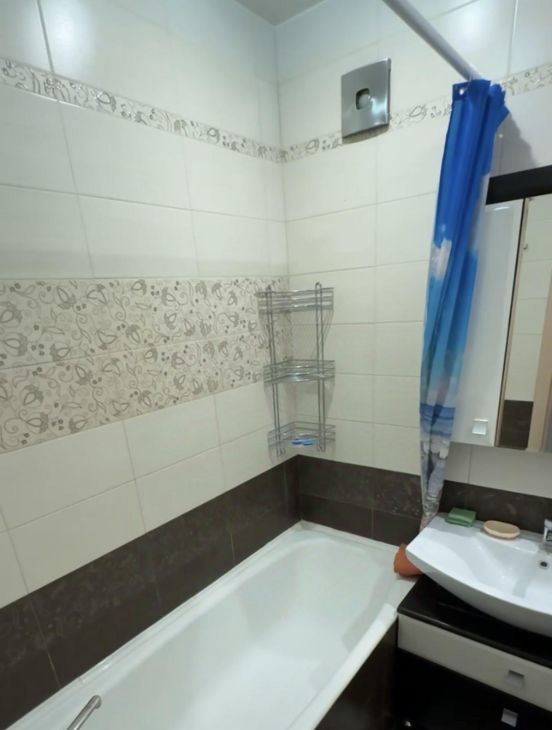 Квартира оснащена всем необходимым для комфортного проживания. Сделан евроремонт, который создаёт атмосферу уюта и современности. В кухне и комнате есть вся необходимая мебель. Из техники предусмотрены холодильник, посудомоечная машина, телевизор и стиральная машина. Санузел совмещённый, с ванной. Окна квартиры выходят на улицу, что делает её светлой и просторной.