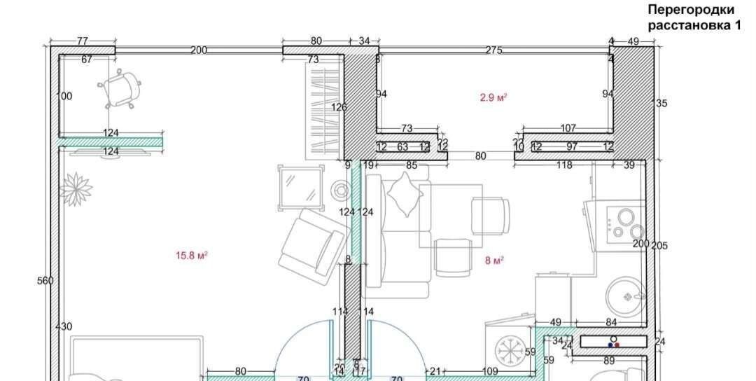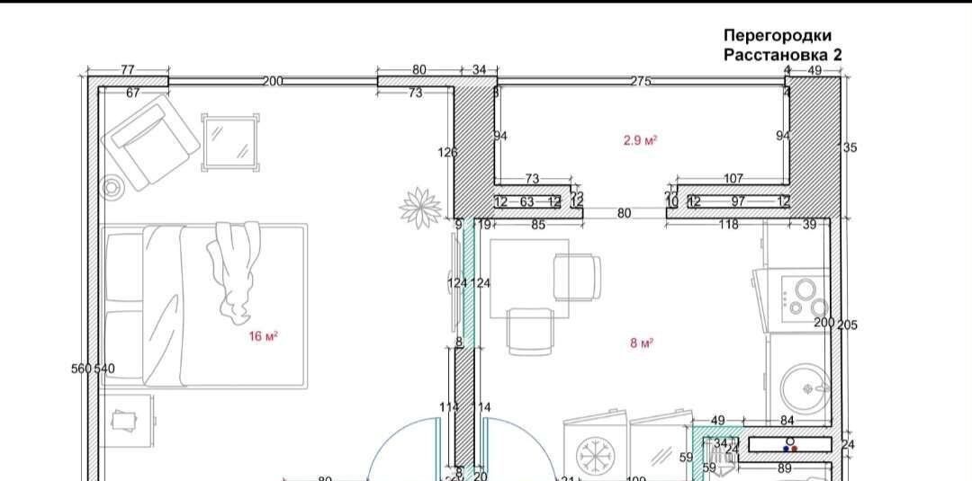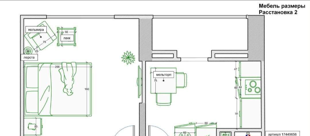 Отличная планировка квартиры, Комната - 18 кв.м, Кухня- 8 кв.м., Санузел- 4 кв.м , Лоджия - 3 кв.м.