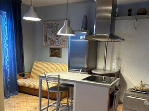 В квартире для комфортного проживания есть электроплита, холодильник, стиральная машина, обеденный стол (раскладной, на фото в сложенном состоянии).