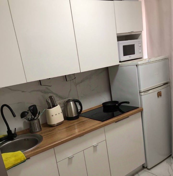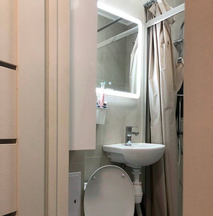В квартире выполнен косметический ремонт. Она полностью меблирована: есть мебель как на кухне, так и в комнате. Из техники — холодильник и стиральная машина. Санузел совмещённый, с душевой кабиной.