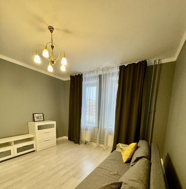 В квартире есть всё необходимое для комфортного проживания: косметический ремонт, мебель на кухне и в комнате, а также вся необходимая техника — холодильник, телевизор и стиральная машина. Совмещенный санузел оборудован ванной. Для удобства жильцов предусмотрена наземная парковка, мусоропровод и два лифта — пассажирский и грузовой.