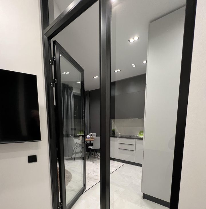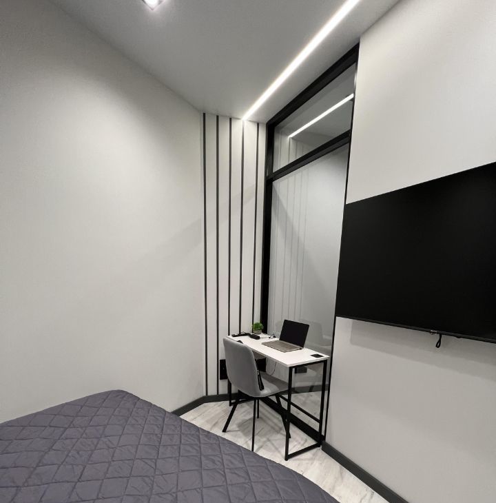 Комната и кухня полностью меблированы, а также оборудованы всей необходимой техникой: кондиционер, холодильник, посудомоечная машина, телевизор и стиральная машина. Ванная комната оснащена душевой кабиной. Окна квартиры выходят во двор, тишина и комфорт обеспечены.