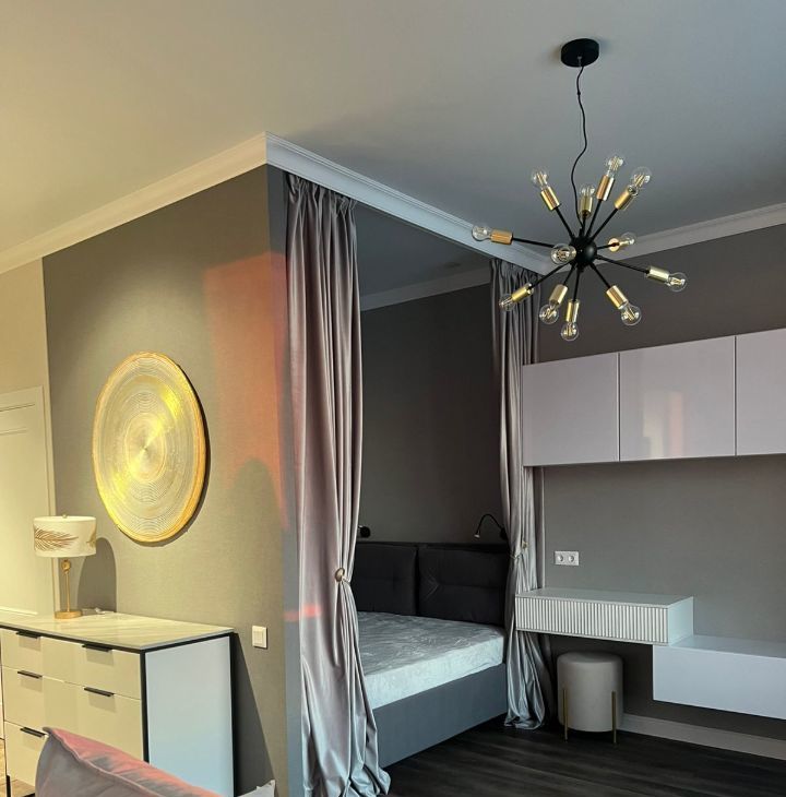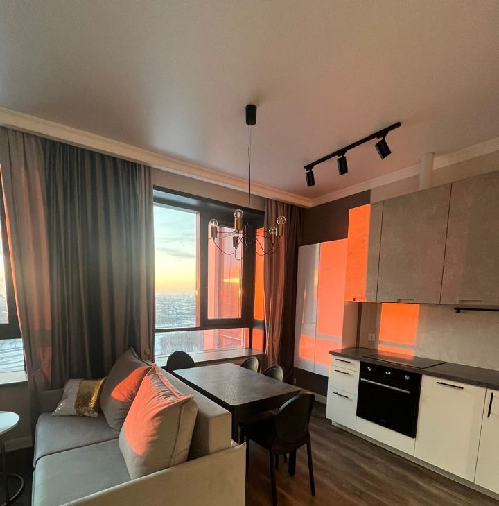 Предлагается на аренду с дизайнерским ремонтом 1-комнатная квартира студийной планировкой в ЖК "Крылья". Кухня полностью со всей встроенной бытовой техникой, гардеробная, зонированное спальное место. Великолепные вид на закаты, окна на юго- запад. На первых этажах комплекса магазины. кафе. салоны, станция метро Аминьевская с переходом на МЦД в 1 минуте пешком.