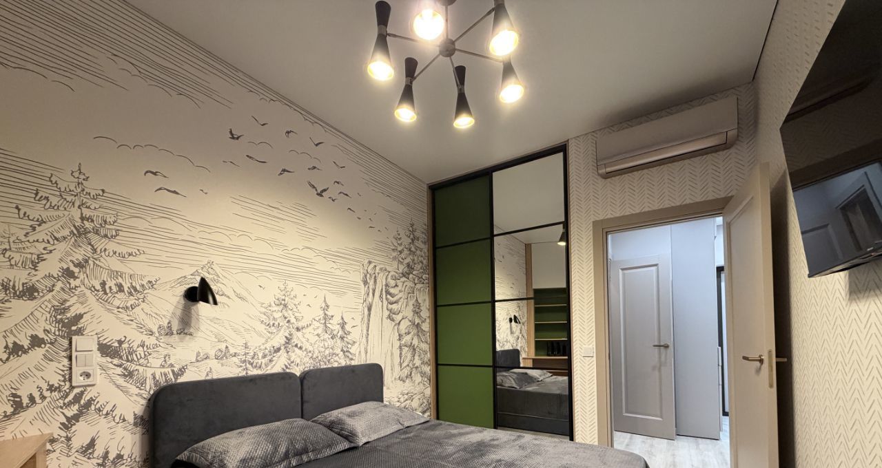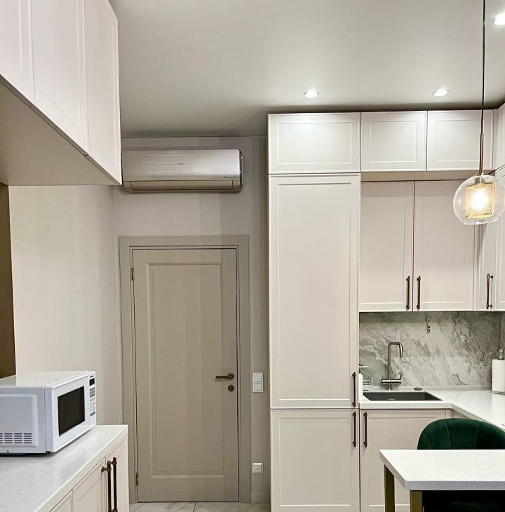 Для комфортного проживания установлена современная техника, включая кондиционеры, холодильник, посудомоечную машину, телевизор, стиральную и сушильную машины. Санузел совмещённый, оборудован душевой кабиной. Просторная гардеробная.