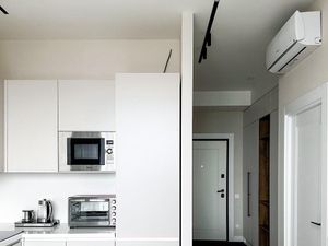 В квартире есть всё необходимое для комфортной жизни: на кухне и в комнате стоит современная мебель. Просторная гардеробная позволяет разместить большое колличество вещей. Из техники — кондиционер, холодильник, посудомоечная машина, телевизор и стиральная машина, духовой шкаф с функцией СВЧ от ведущих производителей. На кухне установлен фильтр для воды. Санузел совмещённый, оборудован душевой кабиной и гигиеническим душем . Просторная кухня площадью 10 кв. м станет отличным местом для кулинарных экспериментов. На этаже установлена камера и есть приложение , где вы можете все просматривать .