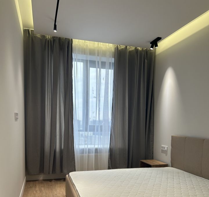 ЖК "Крылья". Квартира от собственника. Свежий ремонт. 28 этаж с панорамным видом на город. Спальня: кровать, прикроватные тумбы. Кухня: холодильник, посудомоечная машина, духовой шкаф, варочная панель. Гардеробная 4 кв.м с системой хранения. Кондиционер, интернет.