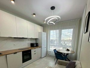 Просторная современная однокомнатная квартира, расположенная в одноподъездной башне в ЖК "Мичурино". Выполнен ремонт в светлых тонах. Квартира полностью меблирована. Очень просторная кухня - 13,6м. Встроенный кухонный гарнитур оборудован всей необходимой техникой, включая посудомоечную машину. Спальня 17м, спальный гарнитур. Очень просторная лоджия 6м. Большой совмещенный санузел. Много шкафов. Панорамный вид из окон. Благоустроенная территория ЖК. Развитая инфраструктура района. Близость к 2 веткам метро. Хорошая транспортная доступность на автомобиле.