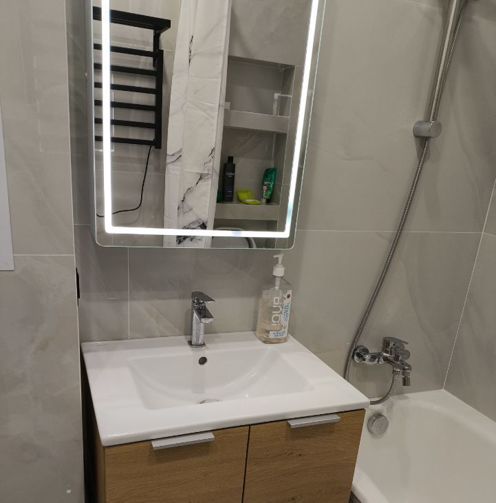 Совмещенный санузел, подогрев полов, гигиенический душ, новая сантехника.