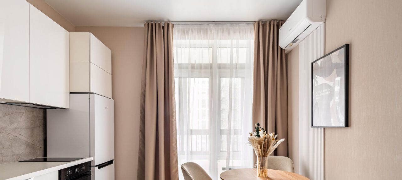 Сдаётся уютная однокомнатная квартира в новом доме рядом с метро Прокшино. Общая площадь квартиры составляет 35 кв. м, из которых 20 кв. м — это жилая зона и 9 кв. м — просторная кухня. Квартира находится на 5 этаже 15-этажного дома, построенного в 2024 году. Из окон открывается вид во двор и на улицу, что обеспечивает хорошее естественное освещение.