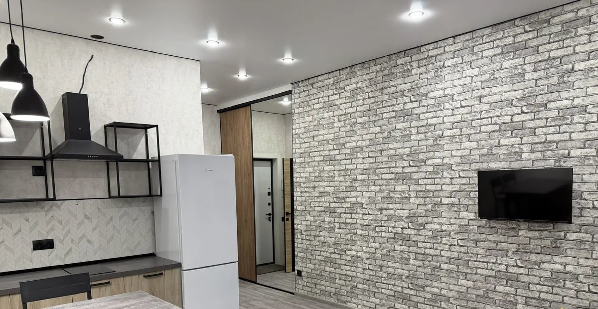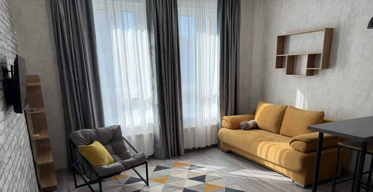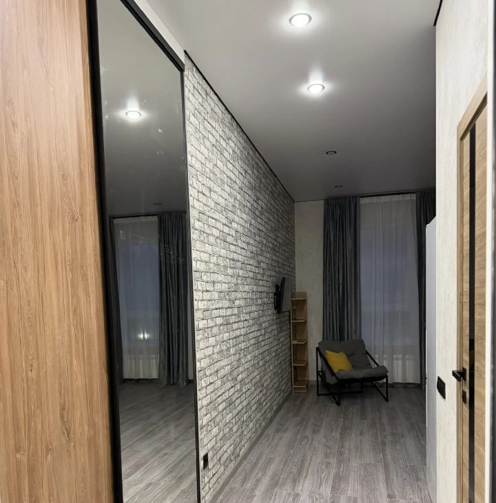Собственником на долгий срок сдаётся просторная студия с новым, стильным ремонтом. Квартира оборудована всей необходимой мебелью и техникой (диван-кровать, кресло, телевизор, стол стулья, кухонный гарнитур, холодильник, стиральная машина, бойлер, интернет). В квартире имеется удобная гардеробная с большим количеством стеллажей для хранения вещей и одежды).