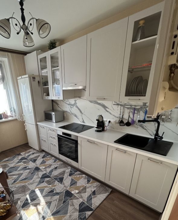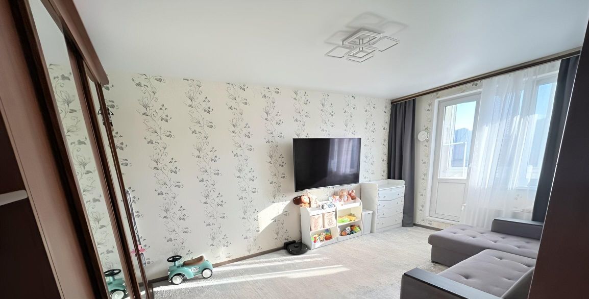 Продается уютная однокомнатная квартира в современном доме по адресу Россия, Москва, улица Льва Яшина, 748_1>, 7. Общая площадь квартиры составляет 37.6 кв. м, жилая площадь — 18 кв. м, кухня — 10 кв. м. Квартира находится на 9 этаже 19-этажного дома, построенного в 2015 году. Высота потолков — 2.74 метра, окна выходят на улицу, поэтому в квартире всегда светло и уютно.