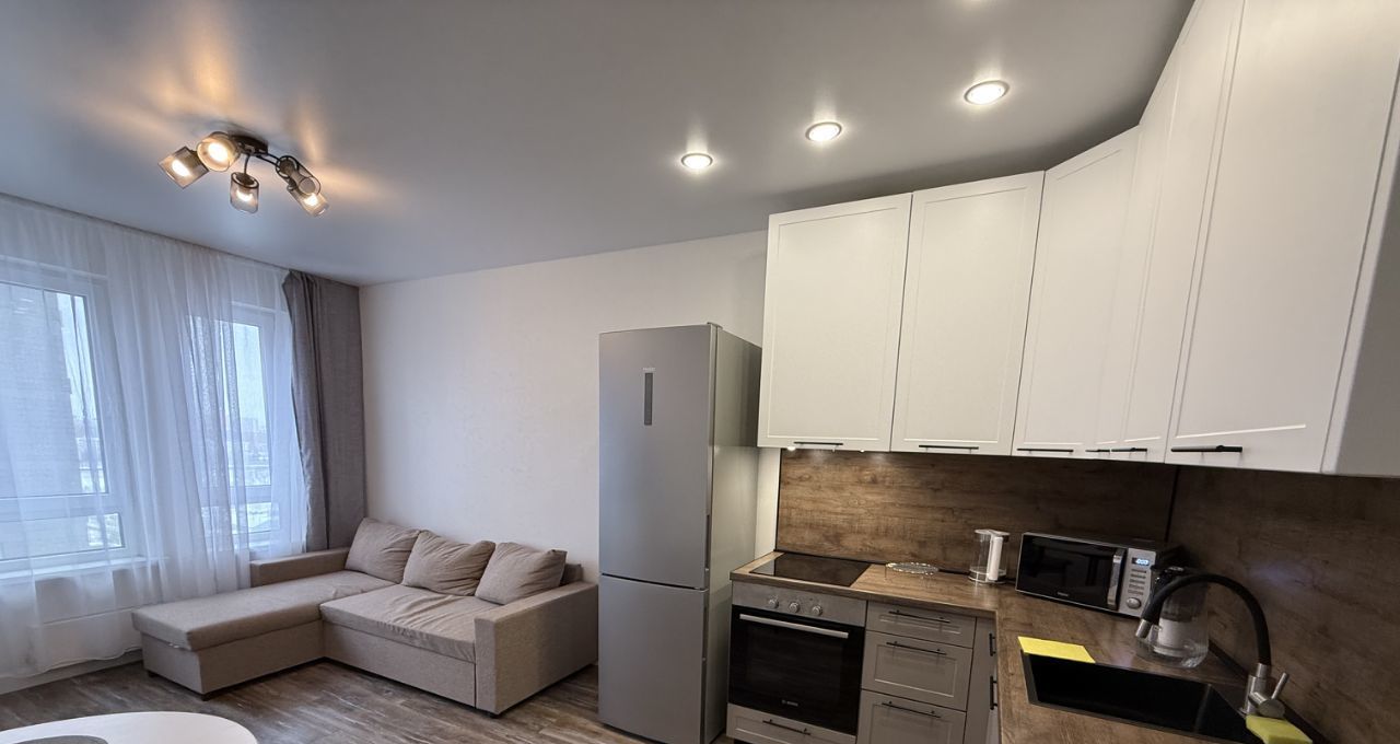 Сдаётся стильная однокомнатная квартира с евроремонтом в современном доме 2023 года постройки. Общая площадь квартиры — 44 кв. м, расположена на 17 этаже 30-этажного здания. Удобное расположение: всего 14 минут пешком до станции метро "Озёрная".
