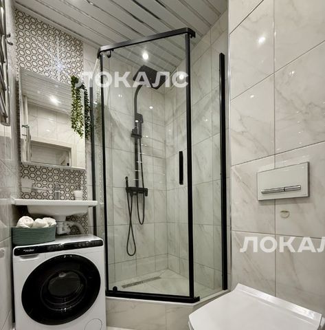 В санузле новая душевая кабина , новая стиральная машинка .