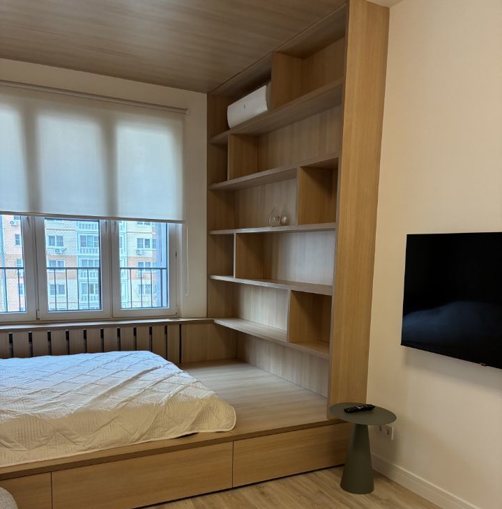 Квартира оформлена с дизайнерским вкусом, что создает атмосферу уюта и комфорта. В комнате и на кухне есть вся необходимая мебель. Для вашего удобства в квартире установлены кондиционер, холодильник, посудомоечная и стиральная машина, а также телевизор.