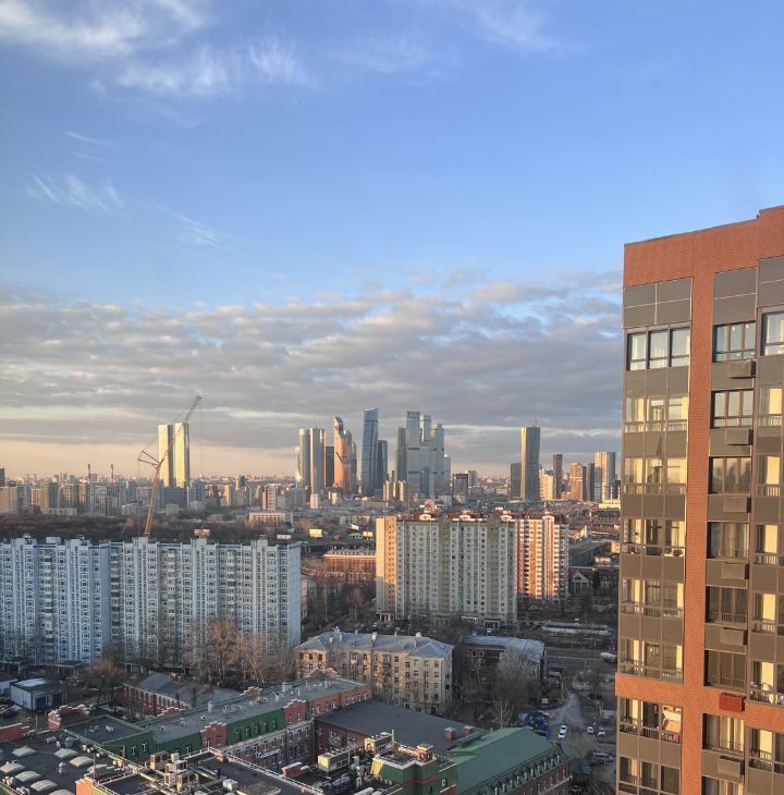 С высоты птичьего полета открывается захватывающий вид на город и Москва-Сити.