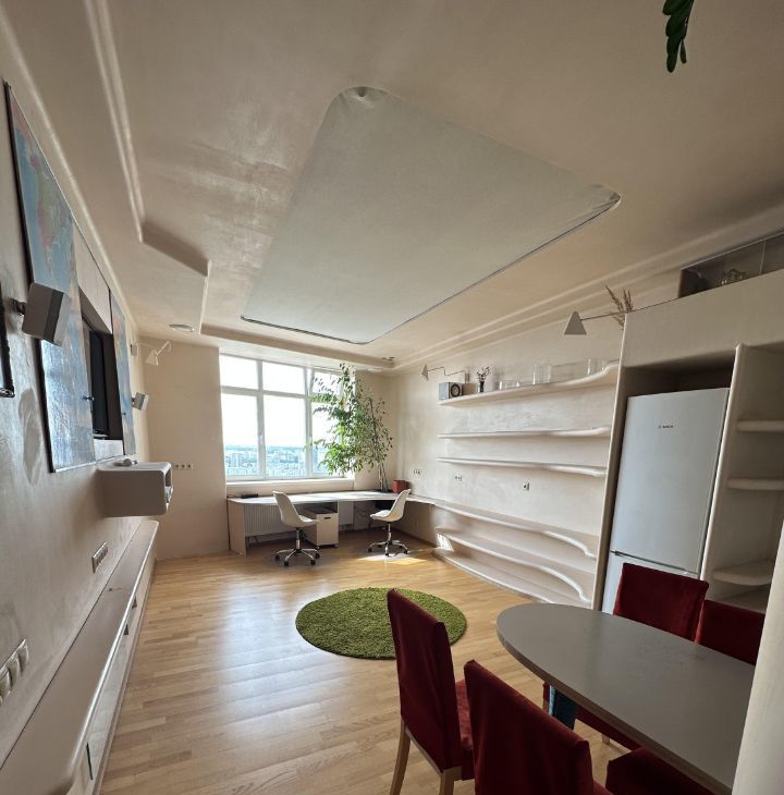 Дизайнерская квартира. Ремонт выполнен из экологически чистых материалов. Планирвока: кухня-гостиная и отдельная спальня. Все шкафы встроены. Продуманное и интересное пространство. Мы ищем арендаторов без животных.