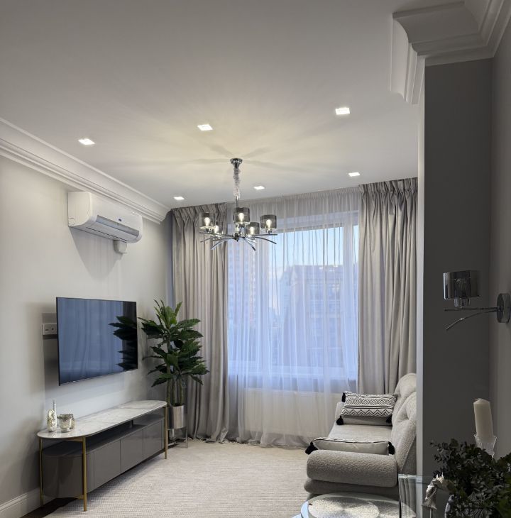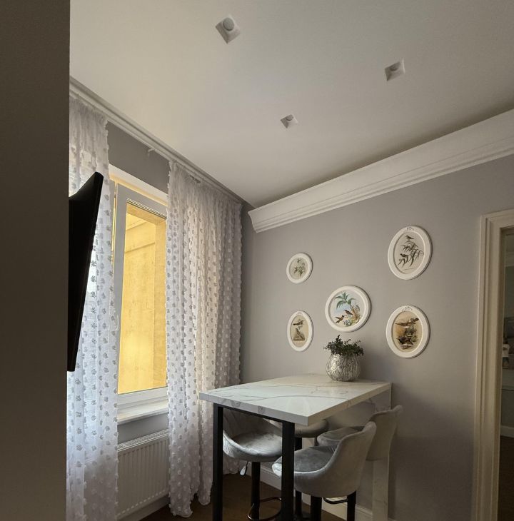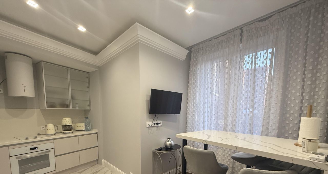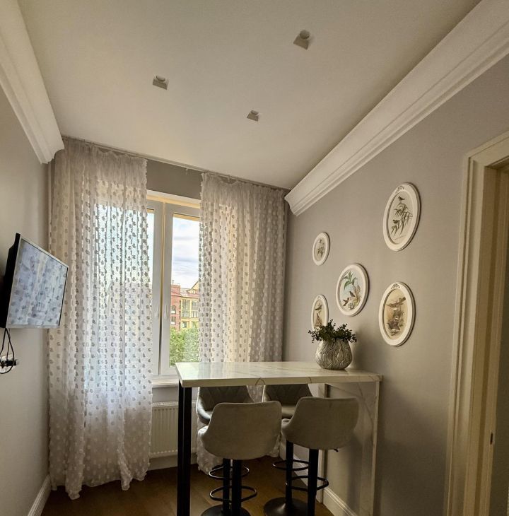 Квартира выполнена в дизайнерском стиле и полностью меблирована. В просторной комнате есть вся необходимая мебель для комфортной жизни. Кухня оснащена современной техникой: кондиционером, холодильником, посудомоечной машиной, телевизором и стиральной машиной. Совмещённый санузел оборудован душевой кабиной. Окна выходят во двор, что обеспечивает спокойствие и тишину.