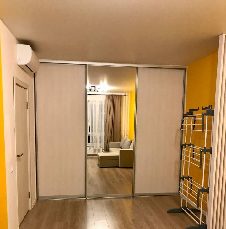 В комнате встроенный вместительный шкаф-купе, шкаф в прихожей, санузел совмещенный.